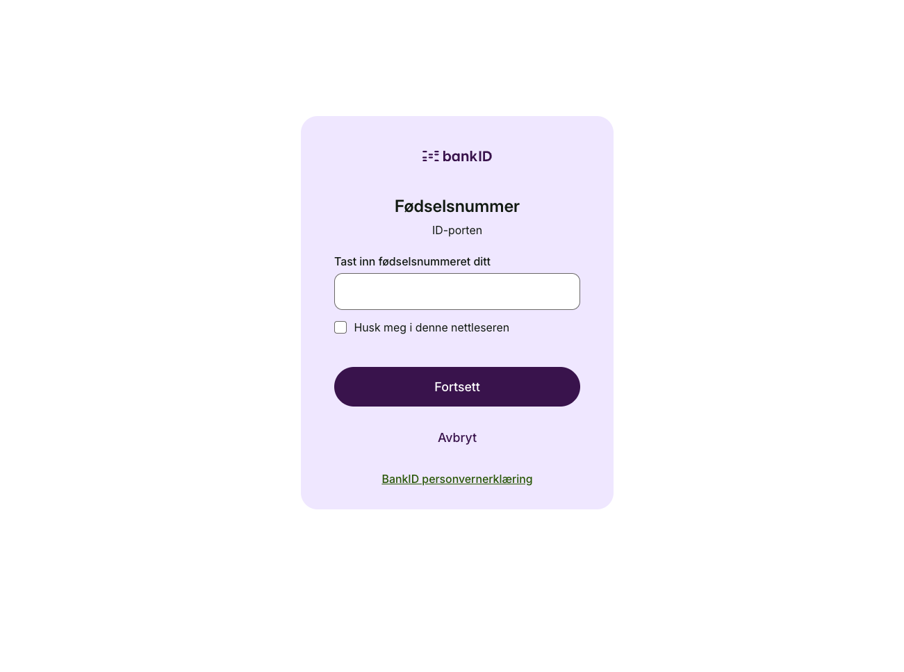Du blir videresendt til ID-porten for sikker innlogging i neste steg.